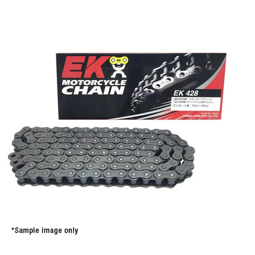 EK’s Standard and Heavy-duty non-sealed chains are manufactured to meet strict quality control requirements. For general purpose use on small capacity motorcycles.