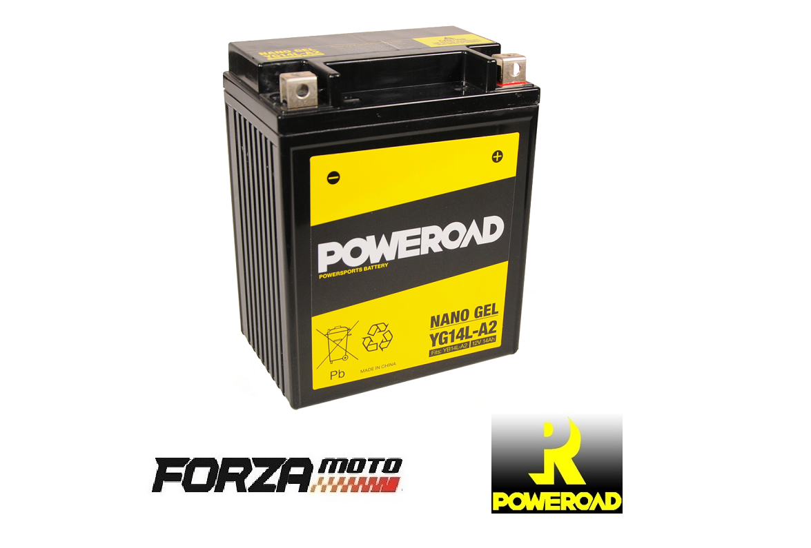 This Poweroad battery YG14L-A2 (fits YTX14AHLBS, YB14L-A2) is used mostly for Asian motorcycles, scooters, and ATVs. All Poweroad batteries come with 12 months warranty